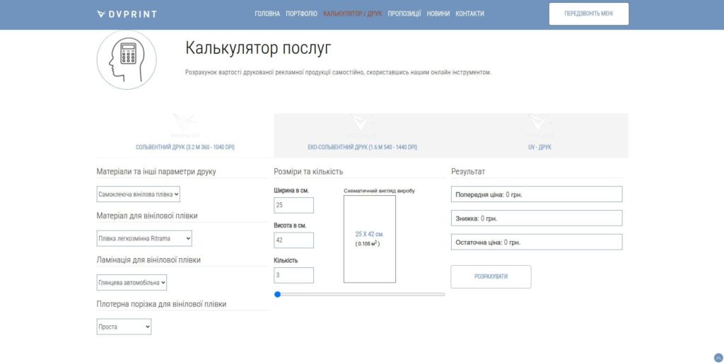 A standout feature of the project is a custom-built service calculator. This interactive tool allows users to dynamically calculate pricing for various print services based on selected parameters such as material type, print format, quantity, finishing options, and other service-specific variables.